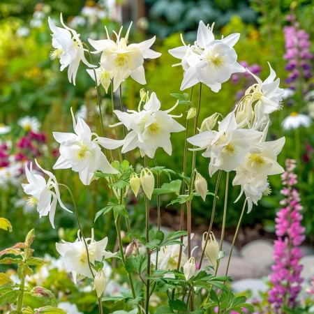 Kvety sú v odtieňoch od bielej po ružovú, červenú, modrú, fialovú, levanduľovú a žltú.