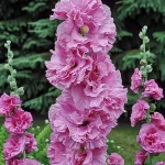Vysoký, stĺpovitý trvalkový ker s jemnými ružovými kvetmi.