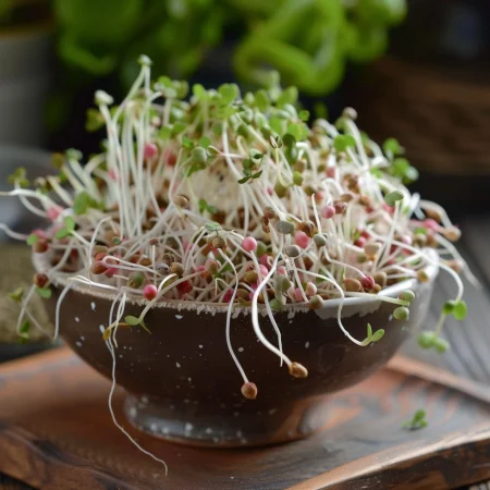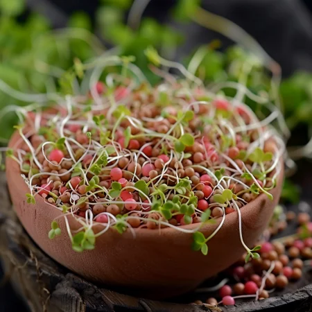 Бързорастящи и хранителни кълнове с лека пикантна нотка. Готови за консумация след 5–7 дни, идеални за салати, сандвичи и здравословни ястия.