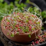 Засаждане: Наситнете семената с вода за 6–8 часа (накисване) и равномерно ги разпределете в съда.