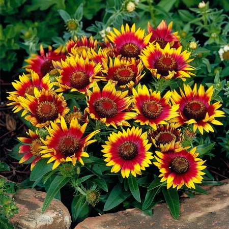 Kompaktná trvalka s jasne červeno-žltými kvetmi, ktoré bohato kvitnú od začiatku leta až do jesene.