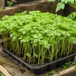 Реколтата се прибира, когато растенията достигнат височина около 5–8 см и развият първите си същински листа.
